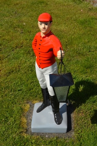 Breng karakter in je tuin of interieur met deze grote jockey ruiter met lantaarn.