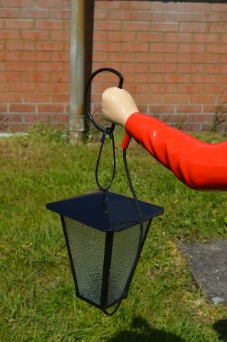 Dit imposante tuinbeeld is gemaakt van hoogwaardig polyester en daardoor ideaal als buitenlamp of decoratie bij een ingang, winkel of bedrijfspand. Dankzij de afwerking met autolak is het beeld bestand tegen alle weersinvloeden, waardoor het jarenlang mooi blijft. De verlichting sluit je eenvoudig aan met de stekker aan de achterzijde.