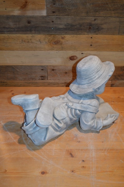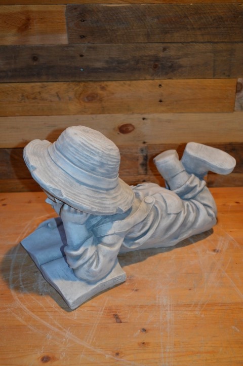 Lezende jongen ligt rustig op zijn buik een boek te lezen. Een mooi, levensecht betonnen kinderbeeld dat zeker tot de verbeelding spreekt. Door de ontspannen houding en het gedetailleerde ontwerp is dit tuinbeeld een rustpunt in elke siertuin of op een grasveldje. Gemaakt van duurzaam beton en weerbestendig – geschikt voor alle seizoenen. Een vertederend beeld dat kinderen en volwassenen aanspreekt.