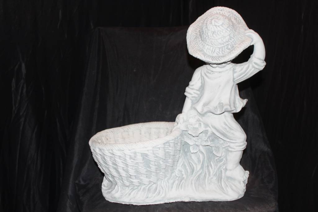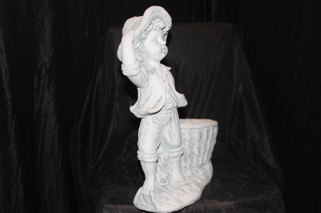 Sfeervol en decoratief: dit betonnen beeld van een jongetje met plantenbakje voegt karakter toe aan iedere plek.