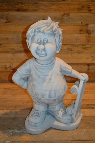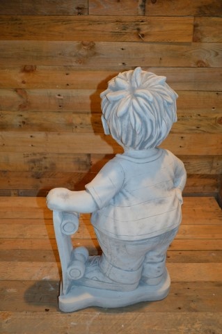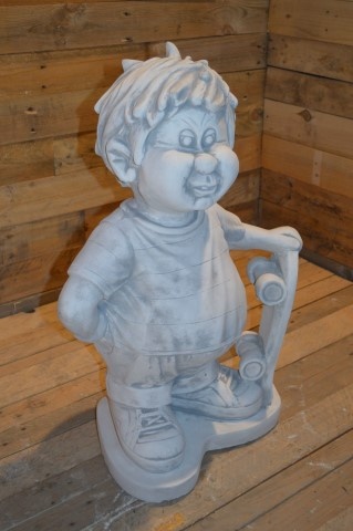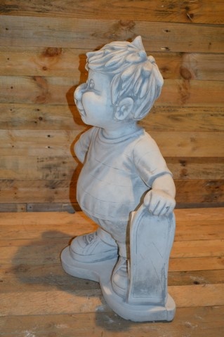 Laat speelsheid en enthousiasme zien met dit Betonnen beeld Skateboard jongen.