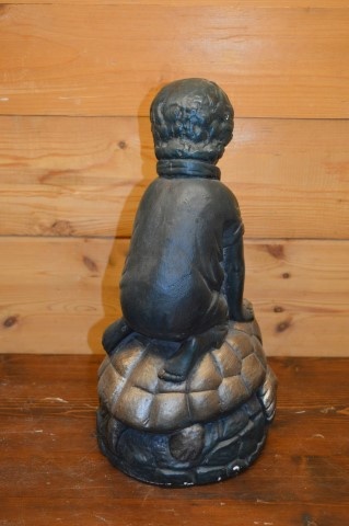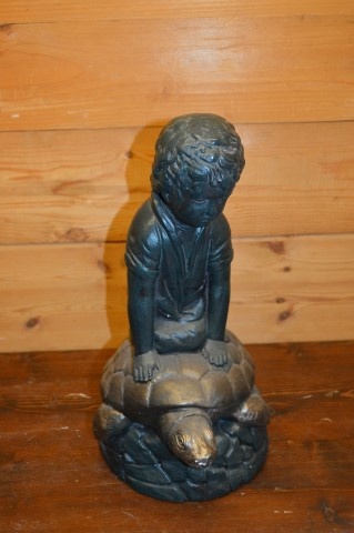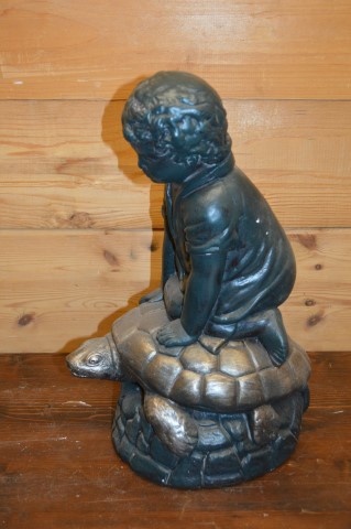 Breng een vleugje charme in huis met dit beeld van een jongen op een schildpad van gips.