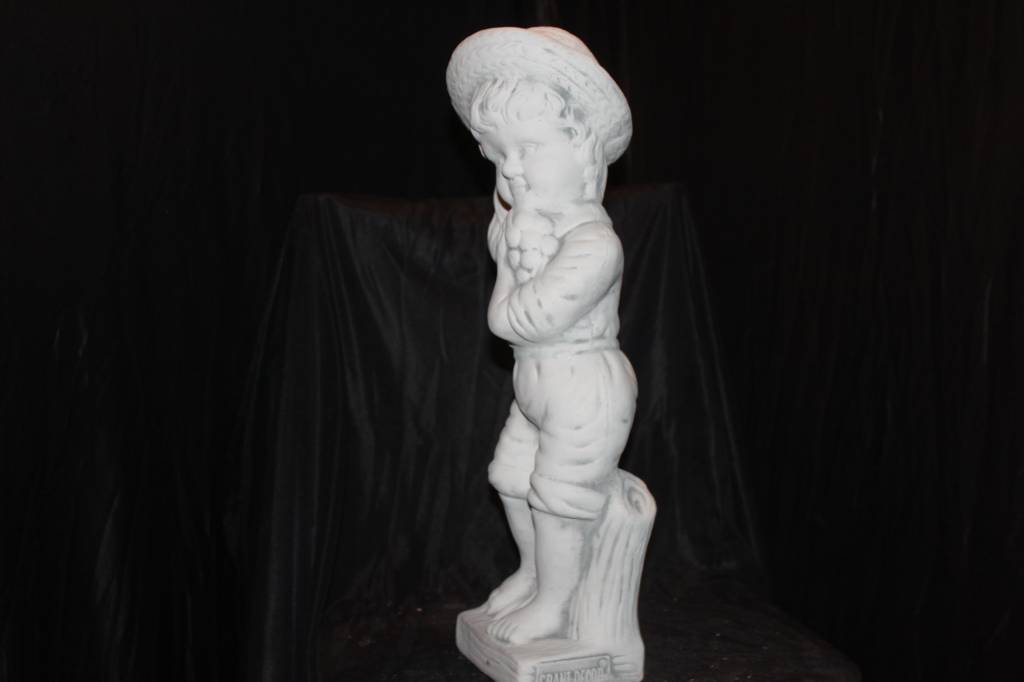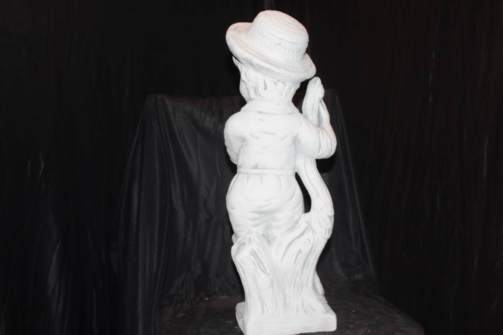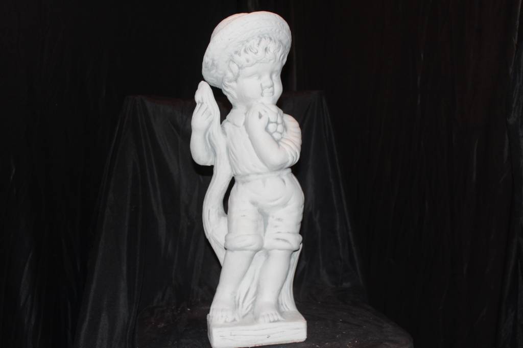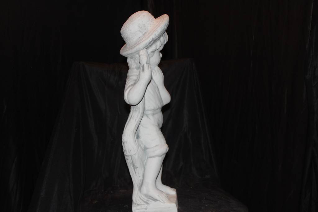 Betonnen beeld van een jongetje met strohoed – Decoratief beeld voor tuin of vensterbank