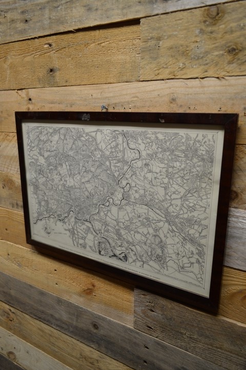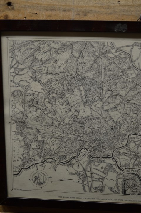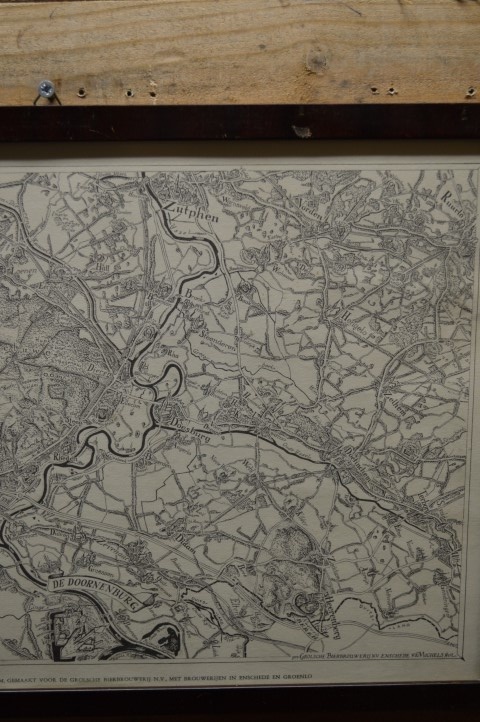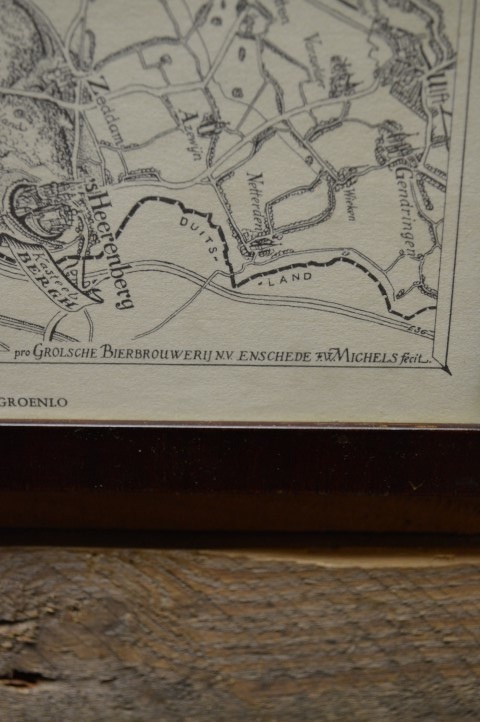Unieke landkaart in mahoniehouten lijst vermoedelijk uit de jaren 60. Deze kaart werd door F.W Michels uit Amsterdam, gemaakt voor de Grolsche brouwerij NV, met brouwerijen in Enschede en Groenlo.