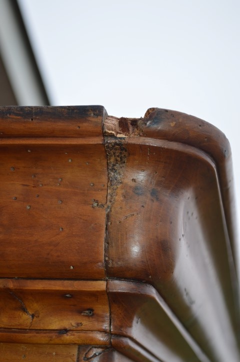 Deze kast heeft een aantal gebruikssporen door de tand des tijds opgelopen waaronder de ladenlopers die nagekeken moeten worden want de laden lopen aan.