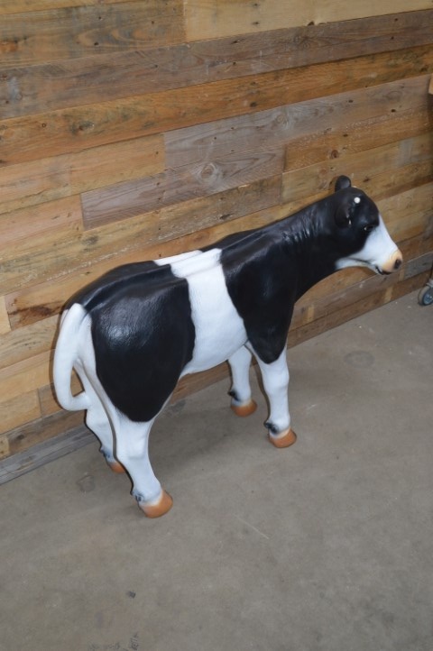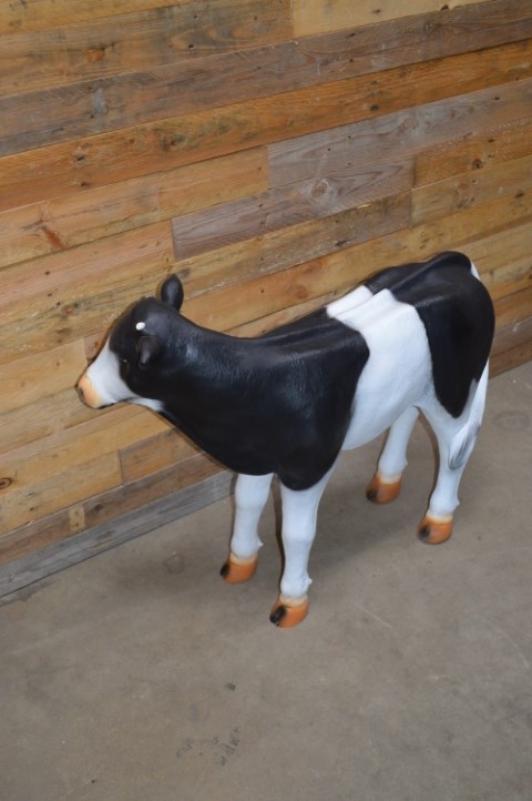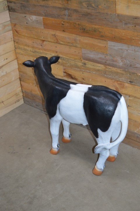Polyester tuinbeeld zwart bont kalf – Een bijzonder leuk beeld voor iedereen met een zwak voor het boerenleven. Dit zwarte bontkalf is uitgevoerd in duurzaam polyester en vormt een echte blikvanger in de tuin, bij een stal of zelfs in een landelijke winkelinrichting zoals een slagerswinkel.De agrarische uitstraling maakt dit tuinbeeld perfect voor liefhebbers van het buitenleven of voor wie graag een vleugje plattelandsgevoel naar huis wil halen. Het stevige materiaal is geschikt voor buitengebruik, en het beeld is licht van gewicht, dus makkelijk te verplaatsen.Een speels én decoratief dierenbeeld dat in vrijwel elke setting past!