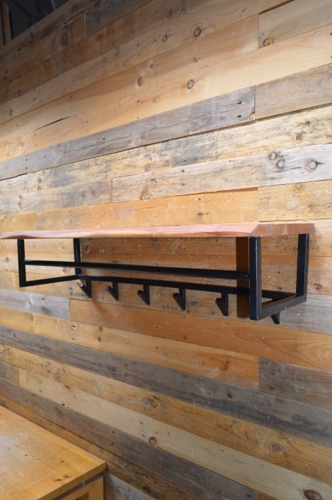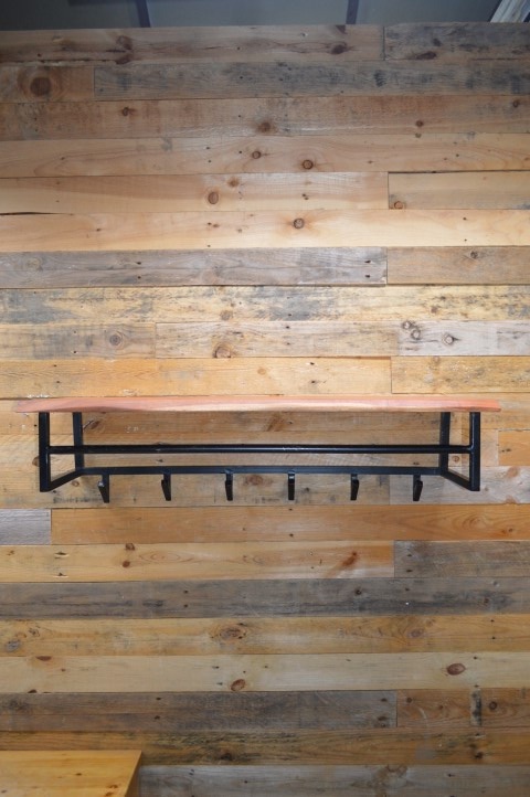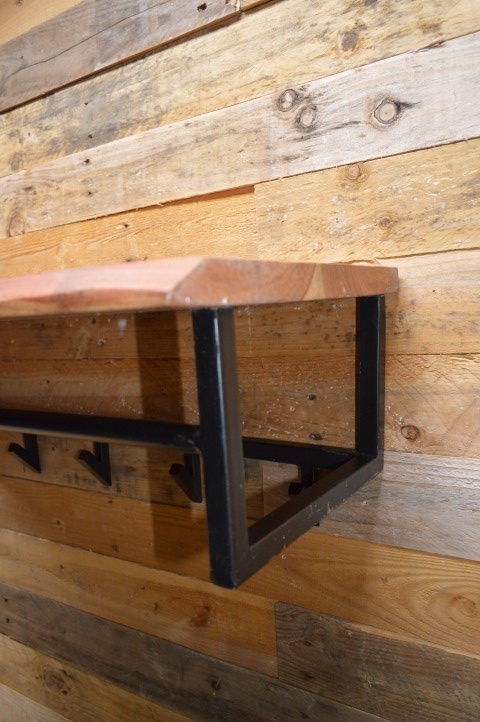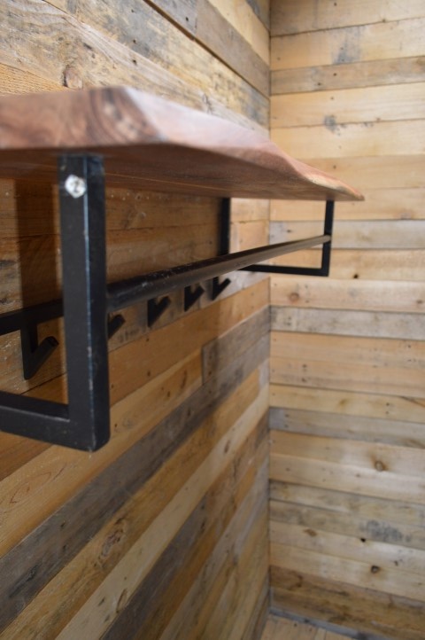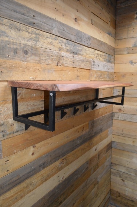 Deze wandkapstok is voorzien van een hoedenplank gemaakt van massief acacia hout van 37 milimeter dik. Zorgvuldig geselecteerd hout, voorzien van een fijne nerf en diverse noesten. Dit zorgt voor een natuurlijke én unieke kapstok aan de wand. Aan de hoedenplank is een zwart geschuurd metalen frame bevestigd met 6 haakjes. Er kunnen zowel jassen aan een haakje of kleerhanger worden opgehangen. De kapstok heeft van twee bevestigingsogen aan de achterzijde, zodat de kapstok eenvoudig aan de wand kan worden gemonteerd.