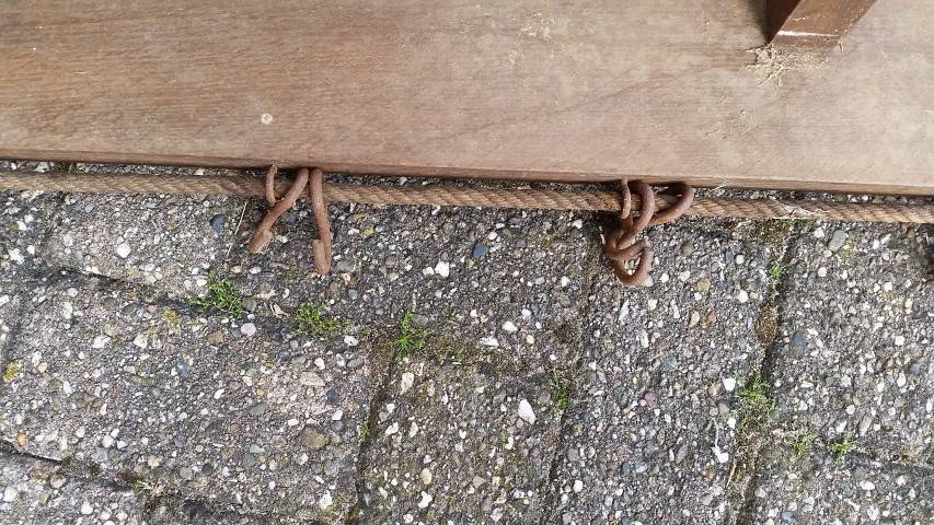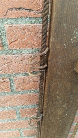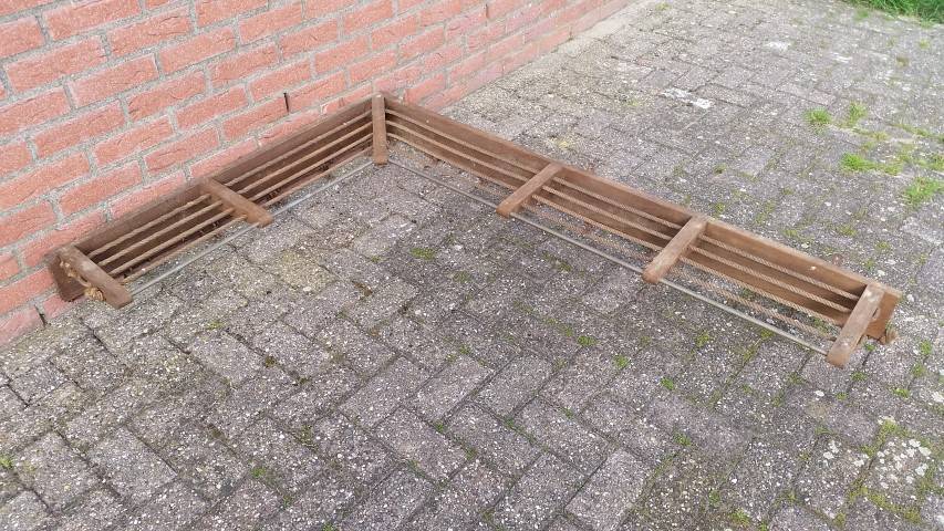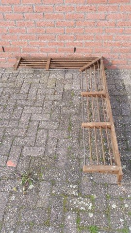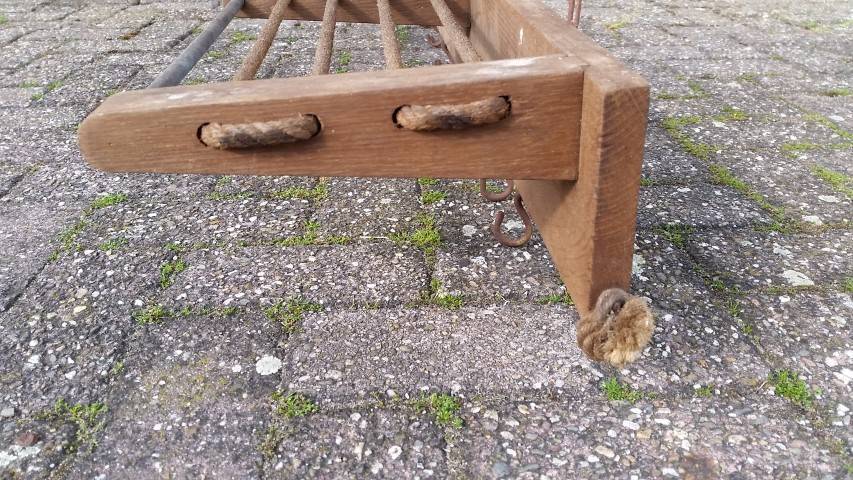 Deze grote antieke kapstok is gemaakt van massief eikenhout en heeft een touw aan de bovenkant om spullen op te leggen en een touw met haken aan de onderkant voor jassen. Afkomstig uit een voormalige bruine kroeg, straalt de kapstok een brocante allure uit en is perfect voor een clubgebouw, kantine of een sfeervolle hoek in huis. Het stevige materiaal en de authentieke uitstraling maken het een uniek decoratief meubelstuk.
