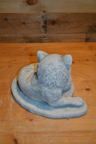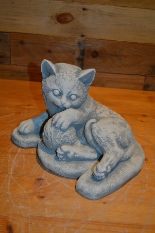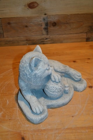Breng plezier en speelsheid in huis of tuin met deze spelende kat met bolletje wol. Dit betonnen poezen beeldje is charmant vormgegeven en kan zowel binnen als buiten geplaatst worden. Het is ideaal als origineel cadeau voor kattenliefhebbers of als vrolijke decoratie die overal de aandacht trekt. Een prachtige toevoeging aan iedere vensterbank, tuinhoek of dressoir.