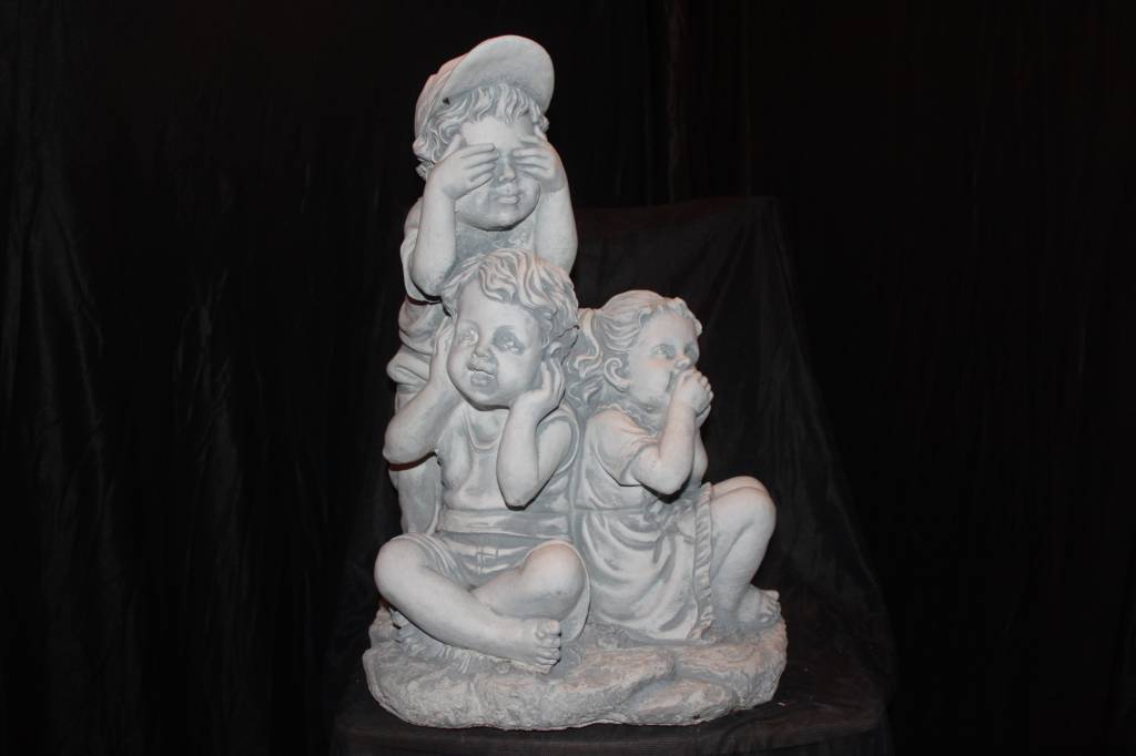 Betonnen beeld van drie kinderen – Spreekwoord “Horen, zien en zwijgen” – Decoratief voor vensterbank of tuin