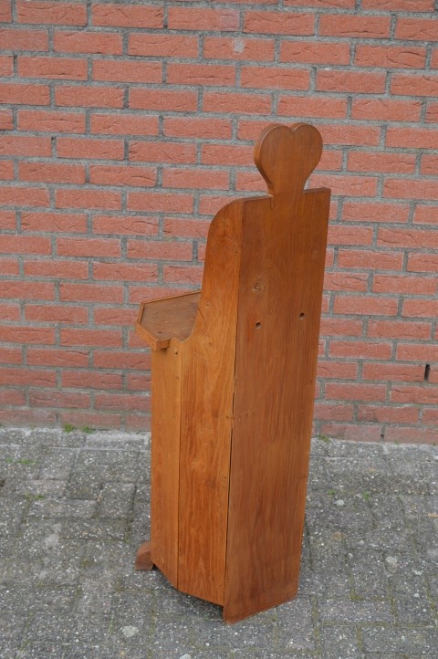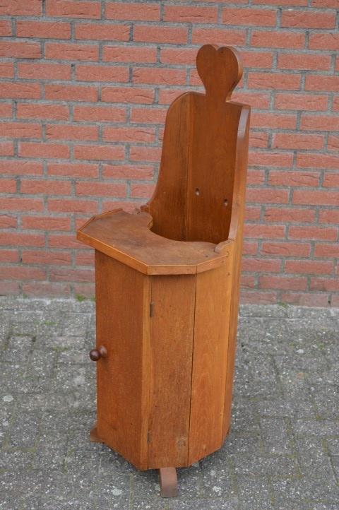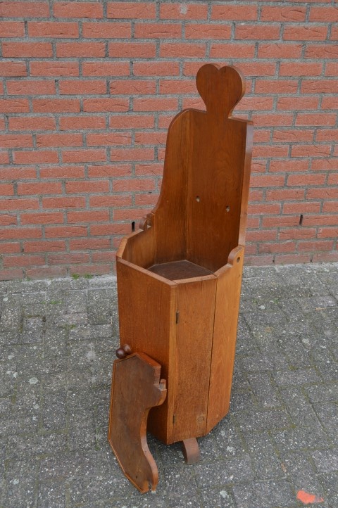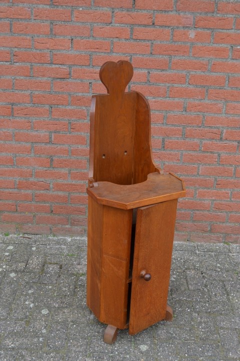 Deze antieke kinderstoel van massief eiken is niet alleen mooi met de leuke hartvorm bovenop, maar ook erg handig in het gebruik als kastje om de spullen van uw kind in te bewaren dankzij de opbergruimte onder het zitplankje en het verwijderbare opklaptafeltje. Omdat de stoel antiek is heeft deze natuurlijk wel wat gebruikssporen opgelopen, maar verkeert verder nog in goede staat en is daarnaast ook nog eens gemakkelijk schoon te maken.