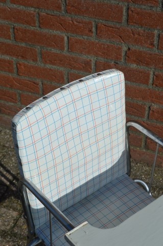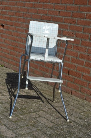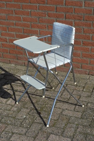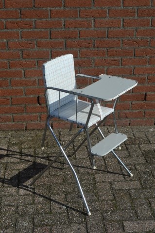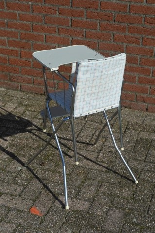 Deze vintage kinderstoel met chromen onderstel is een charmant stukje retro design dat direct de aandacht trekt. Dankzij het slimme ontwerp is deze stoel met een paar handgrepen om te bouwen tot een leuk stoeltje voor aan een speeltafeltje. Een origineel tweedehands item dat zowel functioneel als decoratief is en perfect past in een kinderkamer of speelruimte met een nostalgische uitstraling.