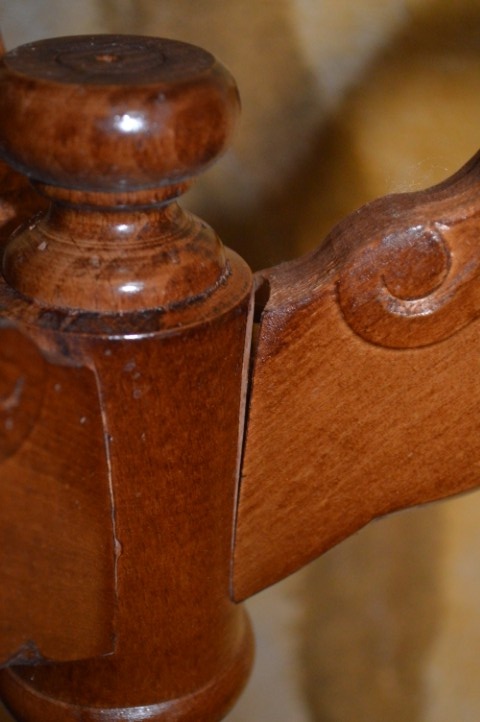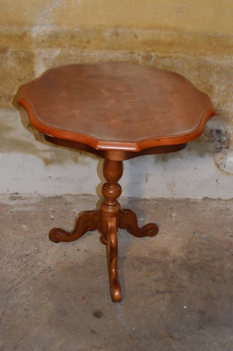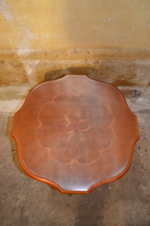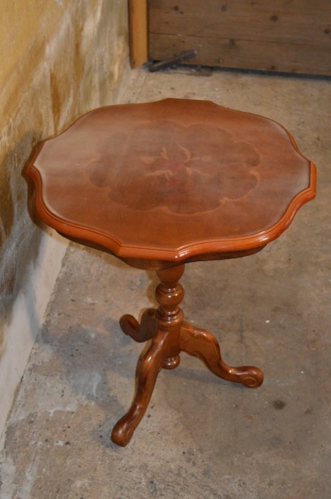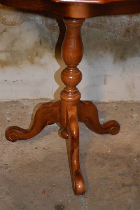 Het betreft een tweedehands meubel met gebruikssporen. De laklaag op het blad is in mindere staat en één poot dient gelijmd te worden. Dit maakt het tafeltje zeer geschikt voor iemand die het graag restaureert of opknapt.