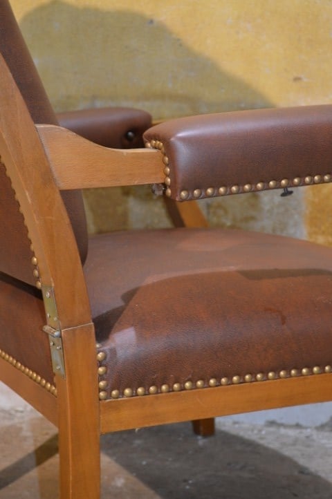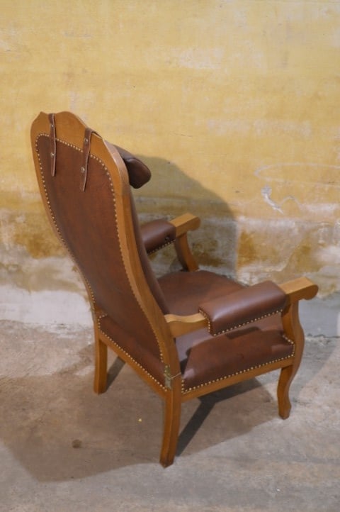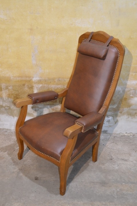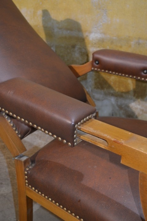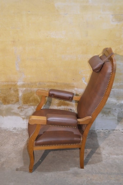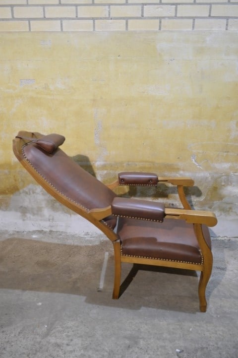 Deze klassieke relaxfauteuil is een bijzonder model uit het begin van de 20e eeuw en straalt luxe en comfort uit. In zijn tijd was dit een echte zetel, ontworpen voor ontspanning en gemak.