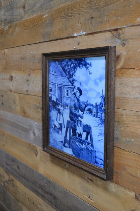 Dit zijn 4 prachtige vintage Mosa Holland Delft Tegeltjes, met de kenmerkende rijke blauwtinten van traditioneel Delfts Blauw. De tegels zijn omringd door een donkerhouten eiken frame.