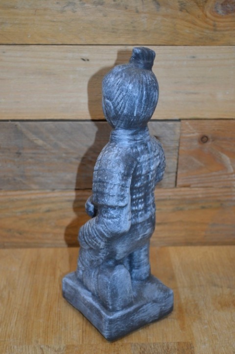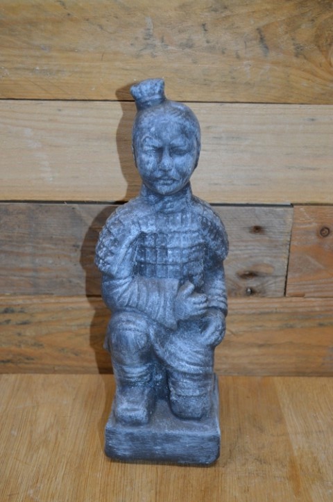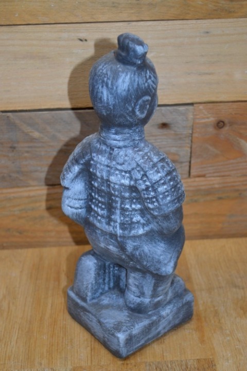 Dit decoratieve beeld van een knielende terracottasoldaat is geïnspireerd op het beroemde Chinese terracottaleger. Het compacte formaat maakt het geschikt voor in de tuin, op een terras of naast een vijver. Het beeld is gegoten in beton en al geschilderd in een klassieke stone kleur. Deze keizerlijke soldaat past prachtig bij andere Aziatische decoraties of als stand-alone stuk op een sokkel.