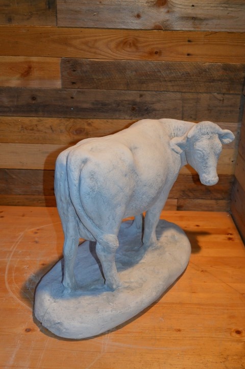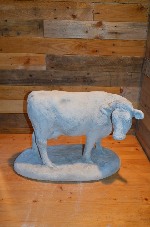 Deze koe rechts kijkend is een natuurgetrouwe kopie van een echte koe, maar dan op kleinere schaal gegoten in beton. De details zijn prachtig uitgewerkt, van de oren tot de staart. Dit beeld past perfect langs een tuinpad, bij een oprit of midden op het gazon. Door zijn solide uitvoering is hij geschikt voor binnen én buiten. Een echte blikvanger voor wie houdt van boerderijsfeer in de tuin.