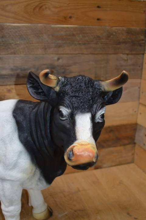 Dit zwart bonte koe tuinbeeld is een indrukwekkend polyester beeld op ware grootte. Ze heeft een klein uierdefect, maar dat doet niets af aan haar landelijke charme en decoratieve waarde. Dit beeld is een echte blikvanger, zowel binnenshuis als in de tuin. Perfect voor liefhebbers van het boerenleven en agrarische sfeer. De natuurgetrouwe zwart-witte afwerking maakt deze koe realistisch en levendig.