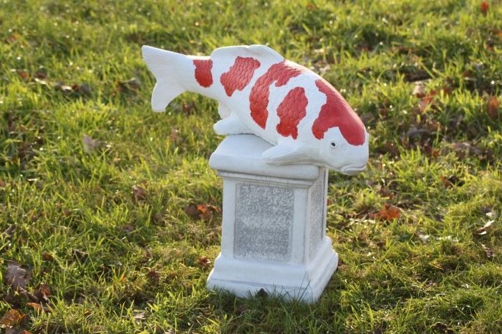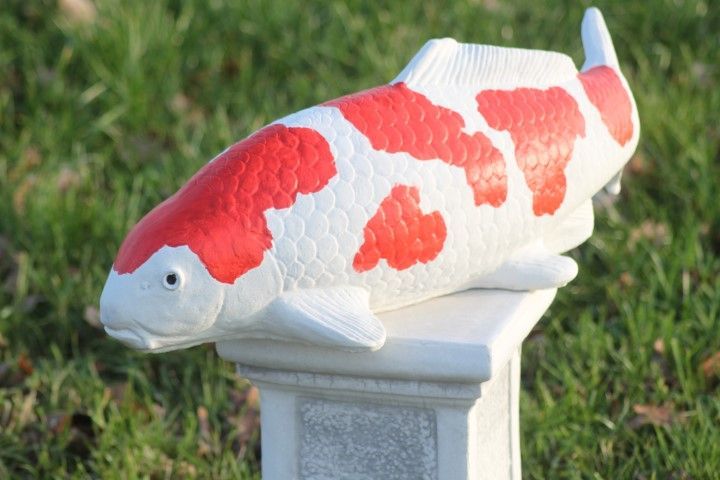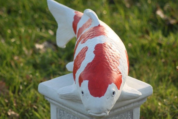 Een elegante verschijning voor elke vijver! Dit betonnen beeld kohaku koi geeft uw waterpartij een levendige en stijlvolle uitstraling.