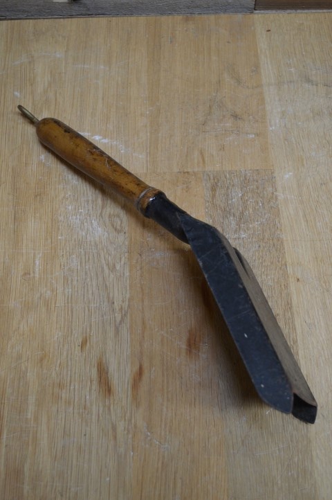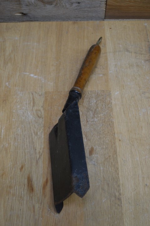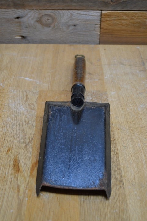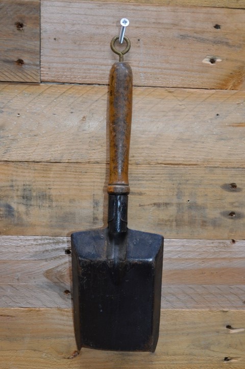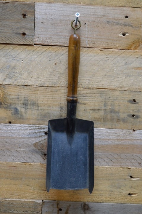 De schep heeft een houten handvat, aan het uiteinde zit een metalen ring om op te hangen. Ook leuk om te gebruiken bij het schoonscheppen van uw haard.