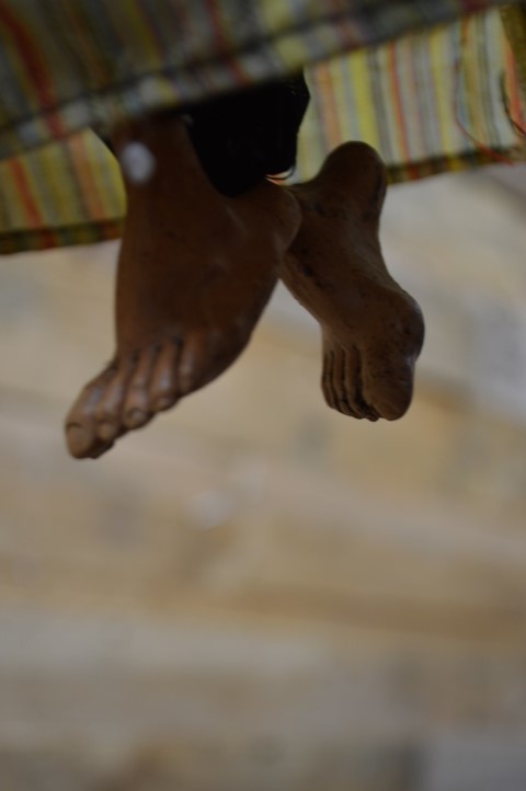 Omdat het een oude pop betreft zijn wel wat gebruikssporen achtergebleven maar desondanks is deze prachtige vintage decoratie nog steeds een uitstekende aanvulling op het interieur, bijvoorbeeld voor in de winter.