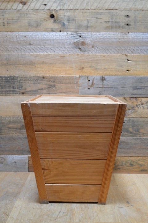 Het krukje is gemaakt van vurenhout en toont gebruikssporen passend bij zijn leeftijd, wat bijdraagt aan de authentieke retro uitstraling. Een charmant en functioneel meubelstuk dat zowel praktisch als decoratief is.