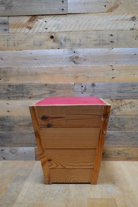 Een stukje praktisch vintage voor in huis. Dit kistmodel krukje hout komt uit de jaren 70 en combineert zitcomfort met handige opbergruimte. De zitting fungeert direct als deksel, waardoor je gemakkelijk kleine spullen, speeltjes of andere accessoires uit het zicht kunt bewaren.