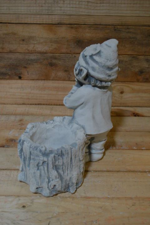 Dit betonnen beeld laaf bij boomstam met bloeiend plantje is een echte blikvanger voor terras, tuin of kamer. Laven zijn fantasierijke figuurtjes, net als trollen, en geven een gezellige, speelse sfeer. Zet hem tussen bloemen of op een kastje, en uw ruimte voelt direct levendiger en vrolijker aan.