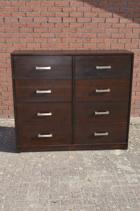 Breng retro sfeer in huis met deze prachtige vintage ladenkast massief donker eikenhout.