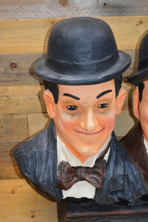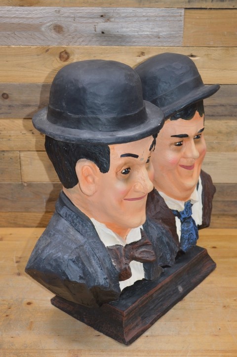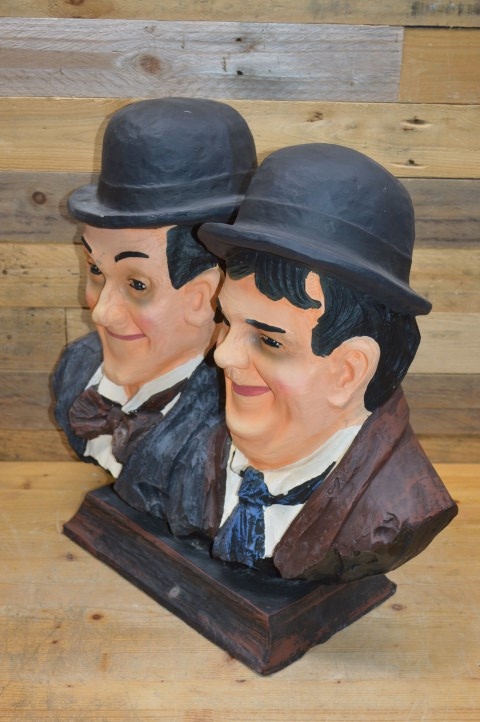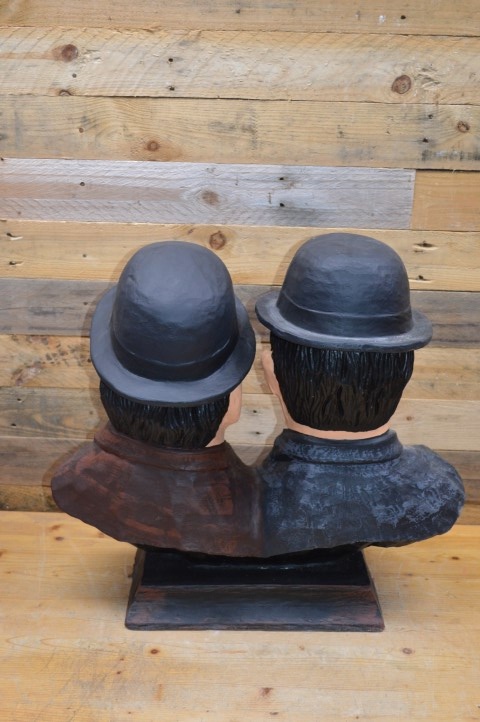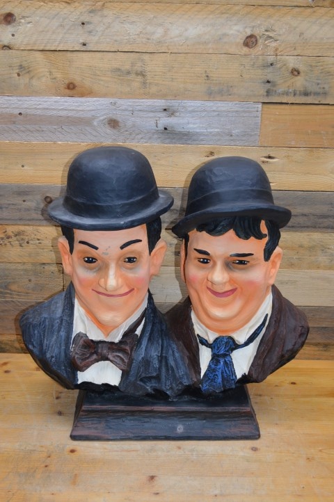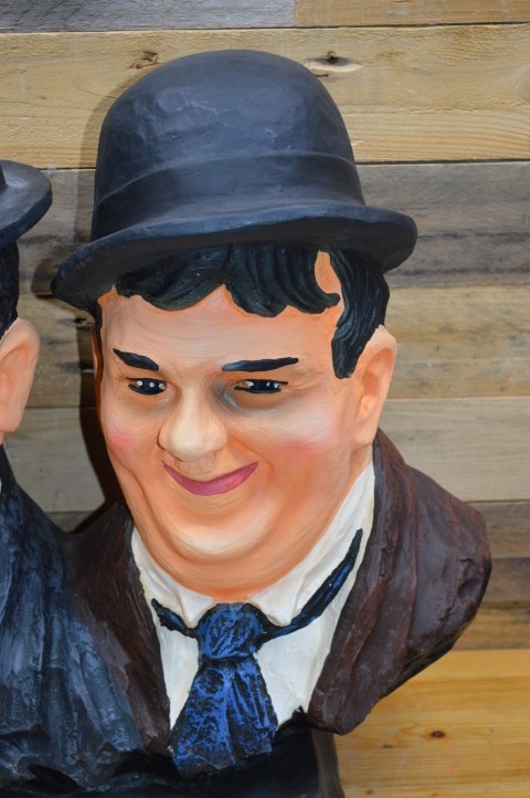 Dit beeld Laurel en Hardy gemaakt van polyester toont het iconische komische duo uit de vroege filmgeschiedenis: de dikke en de dunne, Stan en Ollie. Gemaakt van polyester en uitgevoerd met veel oog voor detail is dit beeld een leuke decoratie voor thuis, de kroeg, een keet of mancave.