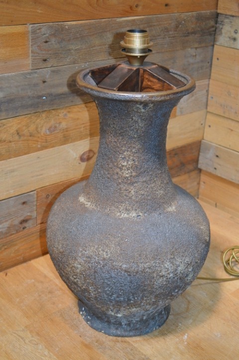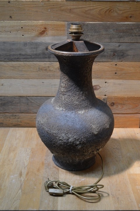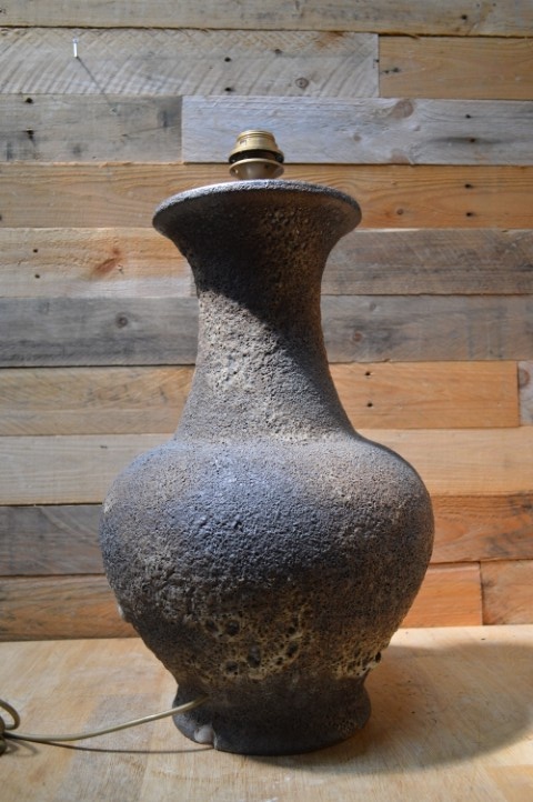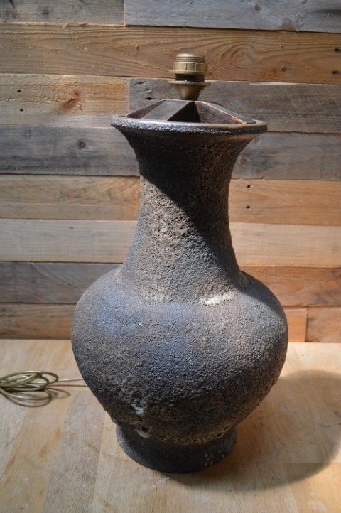 Deze lava keramiek lamp is een sfeervolle vintage tafellamp met een karakteristieke afwerking. De lamp is tweedehands en heeft een klein schilfertje aan de voet, maar dat heeft geen invloed op de werking of uitstraling. Omdat er geen lampenkap bij zit, kun je zelf een kap kiezen die perfect past bij jouw interieur. Een mooie eyecatcher voor op een dressoir, bureau of bijzettafeltje.