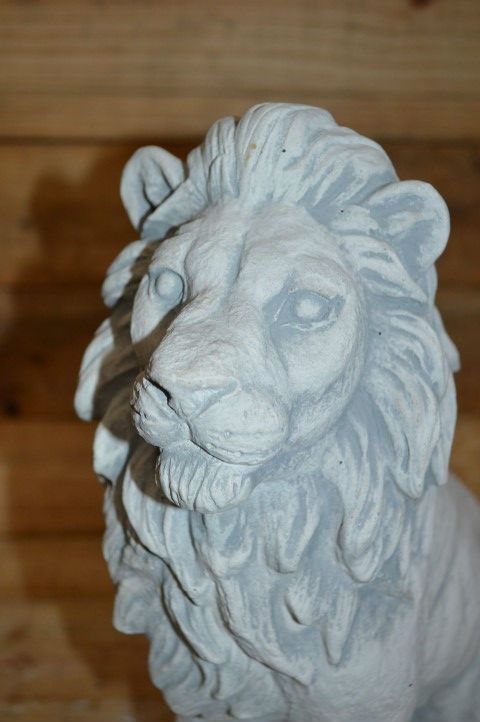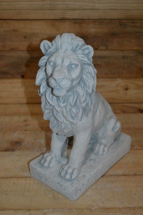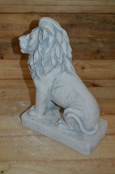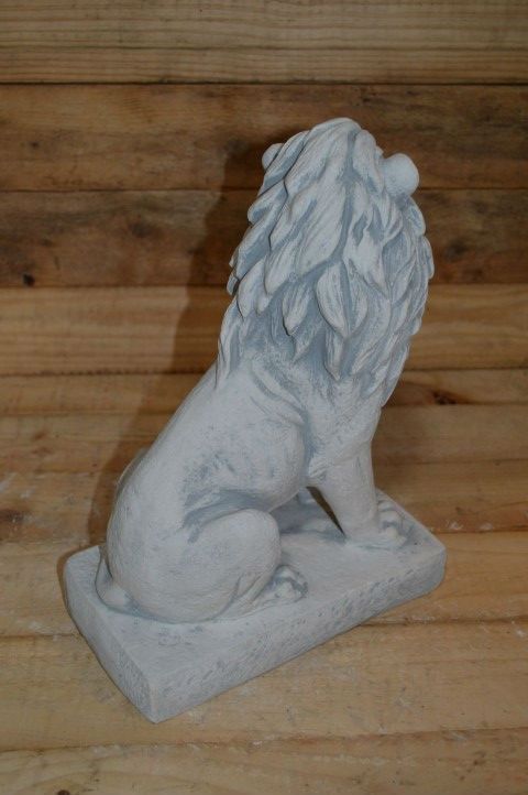 Dit natuurgetrouwe betonnen leeuw beeld toont een links kijkende leeuw die uitstekend dienst kan doen als wachtbeeld bij een tuinpad, voordeur of entree. Dankzij zijn compacte formaat is hij ook ideaal om op een vensterbank of balkon te plaatsen. Voor een extra symmetrisch effect kan dit beeld gecombineerd worden met de rechts kijkende leeuw uit dezelfde serie. Een duurzaam en tijdloos tuinornament dat kracht en waardigheid uitstraalt.