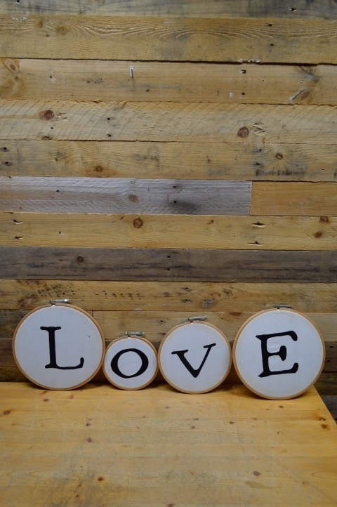 Deze ronde gespannen Love decoratie doeken zijn uitgevoerd met houten spanringen en erg leuk om als decoratie neer te zetten op een dressoir of om als wanddecoratie op te hangen aan de muur van bijvoorbeeld een slaap- of woonkamer. De verschillende afmetingen van de ringen zorgen bovendien voor een speelse uitstraling die overal in huis goed tot recht komt.