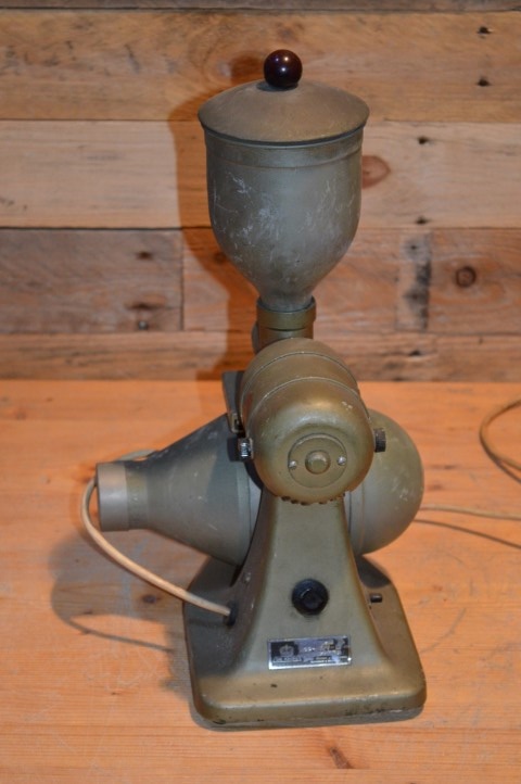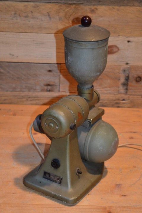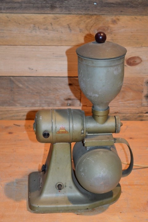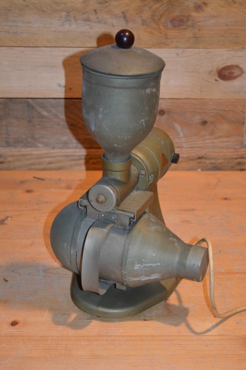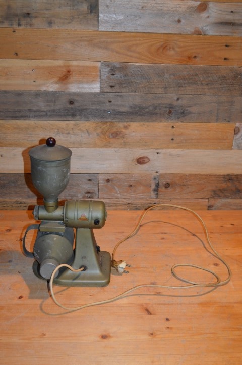 ESM Die Krone - Vintage Elektrische Koffiemolen. Deze maalt de verse bonen naar koffie zodat u altijd een vers bakkie kunt zetten. Deze koffiemaalmachine komt uit de jaren 50-70. Het motortje werkt en de maalinrichting draait maar de verdere werking is onbekend. Wel erg decoratief in een café, koffiewinkel, restaurant of andere omgeving.