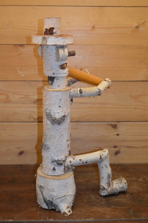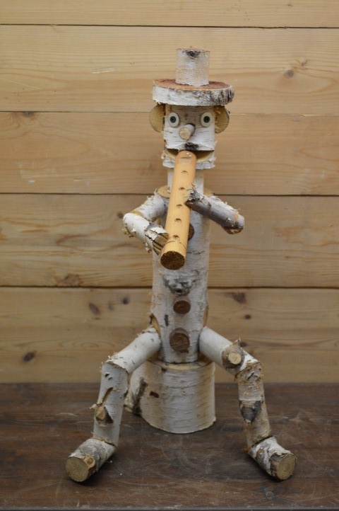 Dit Mannetje van Berkenhout is aan het fluiten op zijn blokfluit. Het is een prachtige figuurtje voor bij de voordeur of in de tuin. Hij zit graag op een boomstronk, hek of paal. Hoewel dit mannetje liever bij een terras zit. Leuke eigentijdse natuurlijke decoratie die opvalt en zich onderscheid in ons plastic tijdperk.