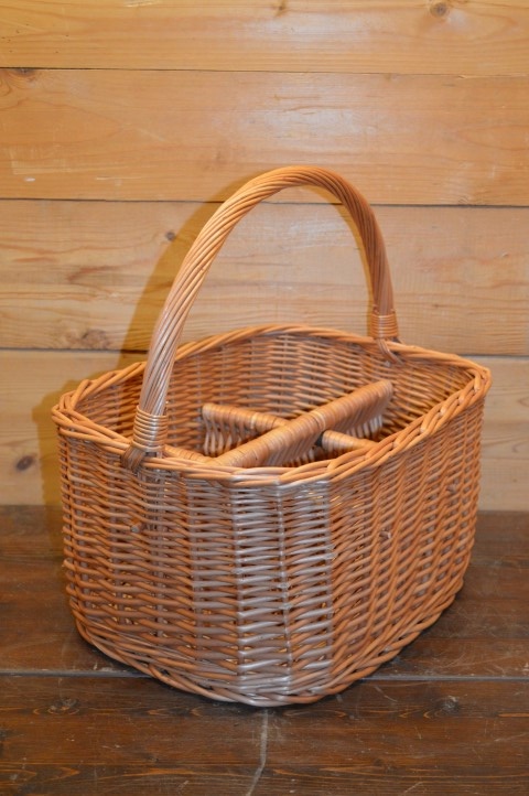 Leuke handige flessenmand gevlochten uit wilgentenen voor 6 flessen met een doorsnede van 8 cm. Dit rieten mandje is geschikt voor flessen wijn, melk, softdrink of andere dranken. Handig op het terras of op het strand de komende zomer.