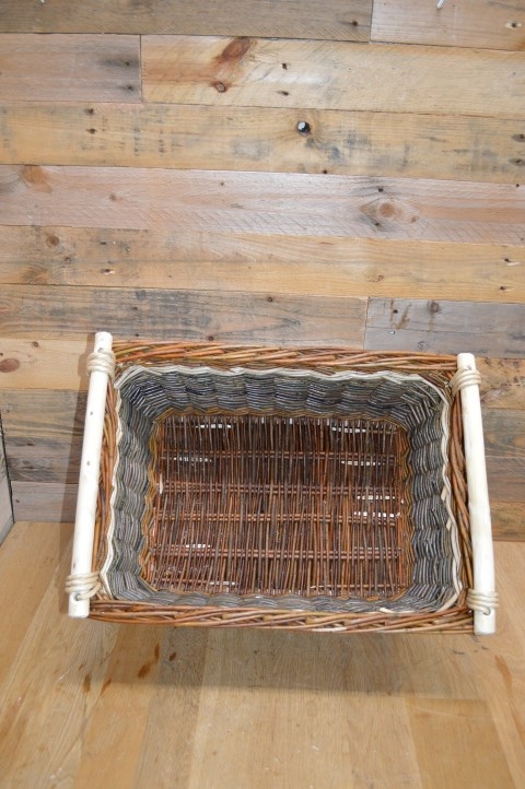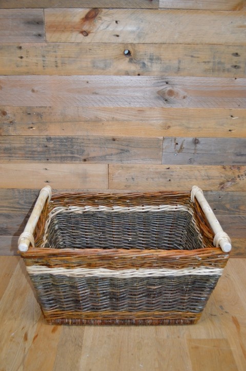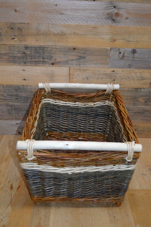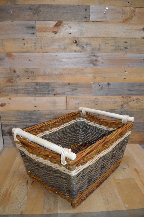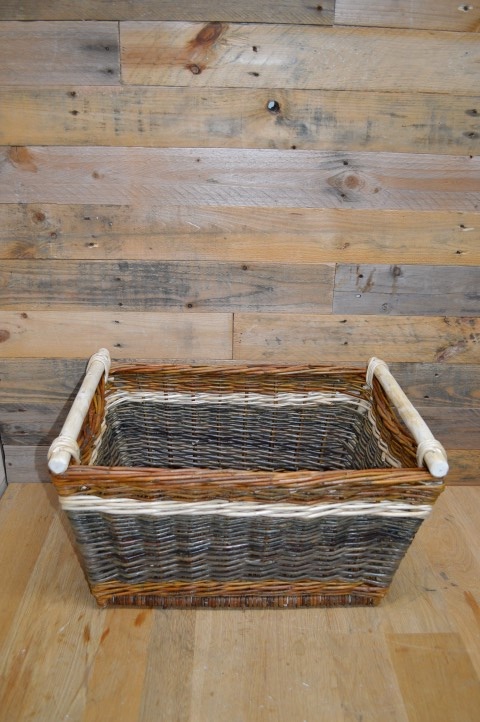 Fraaie handgevlochten mand in drie kleuren met handgrepen van hout. Deze prachtige rechthoekige mand met houten handgrepen fleurt u uw huis of tuin fantastisch op. Ideaal als decoratie of als bloemenmand. Erg functioneel als wasknijpermand of stofdoekenmand. Ook is deze wilgentenen mand erg leuk om te gebruiken als houtmand bij de haard of om spulletjes in te bewaren. Hij past dankzij de neutrale kleuren uitstekend in elk interieur.