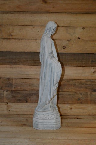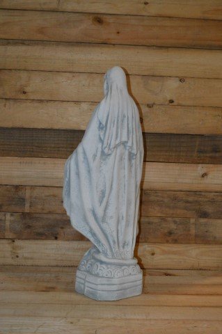 Breng serene rust in uw tuin! Dit betonnen beeld van Maria straalt geborgenheid en vrede uit. Plaats haar op een sokkel voor een opvallende uitstraling, of gewoon op de grond voor een subtiele, sfeervolle aanwezigheid. Een tijdloos kunstwerk dat zowel in een klassieke als moderne tuin prachtig tot zijn recht komt.
