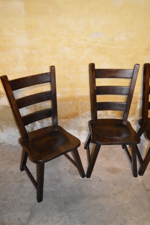De stoelen vertonen lichte gebruikssporen die passen bij hun leeftijd en karakter, maar zijn verder in goede en stevige staat. Perfect te combineren met zowel landelijke als vintage interieurs, of als sfeervol contrast in een modernere ruimte.