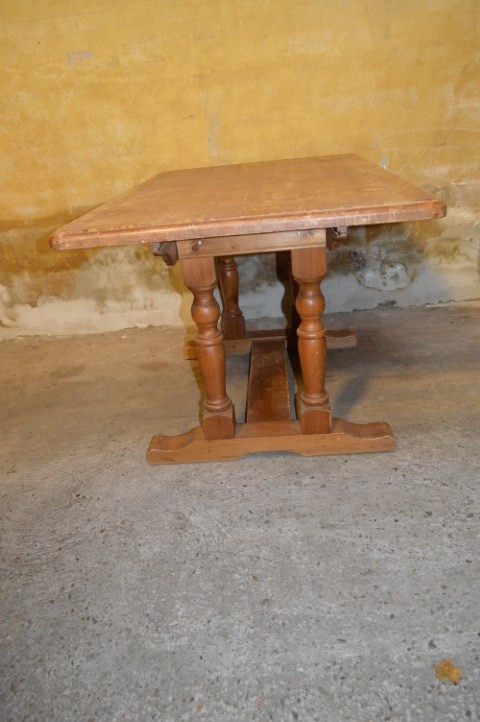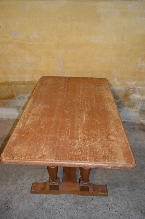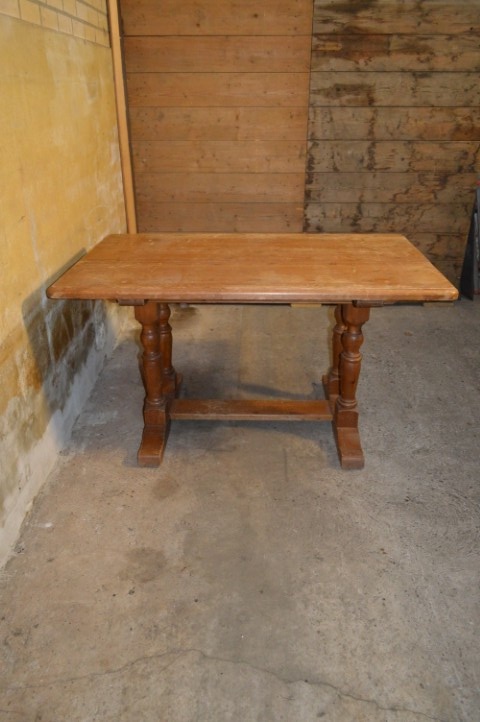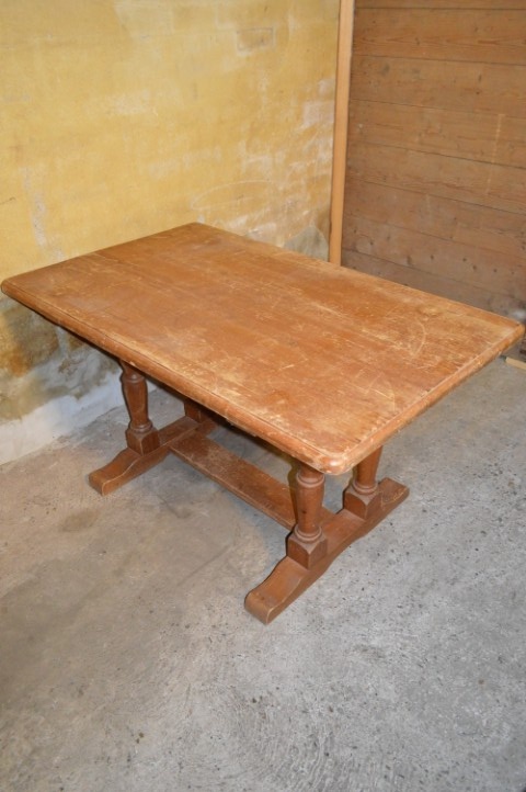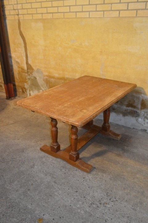Deze tweedehands tafel heeft gebruikssporen die perfect passen bij zijn robuuste karakter. Wilt u hem een frisse uitstraling geven? Dan kunt u hem eenvoudig opnieuw lakken, schilderen of terugbrengen naar een lichte houtkleur. Een veelzijdige, stijlvolle tafel die moeiteloos past in landelijke, vintage en rustieke interieurs.