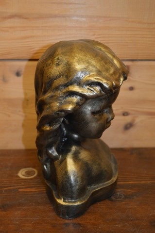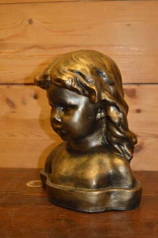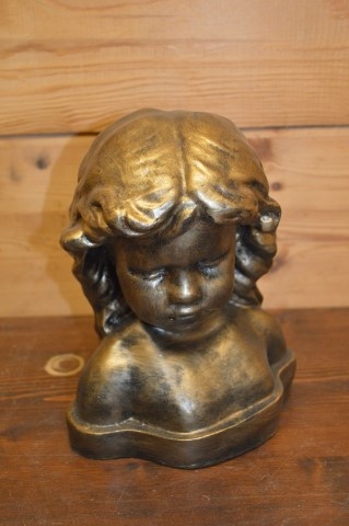 Goudkleurige buste van meisje – decoratief borstbeeld van polyester voor binnen en buiten
