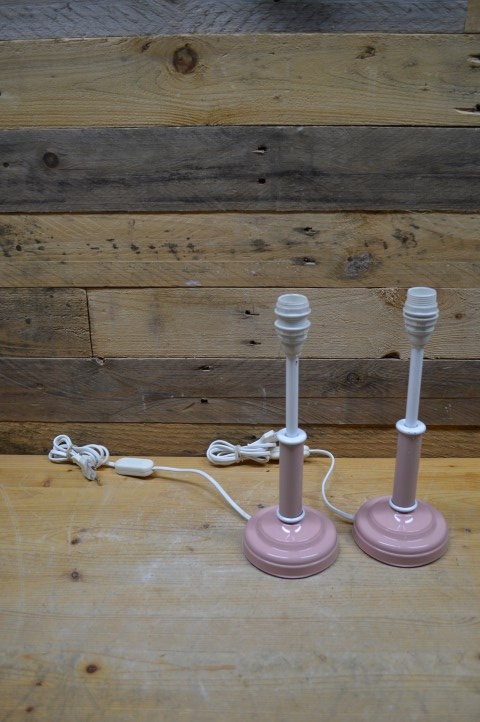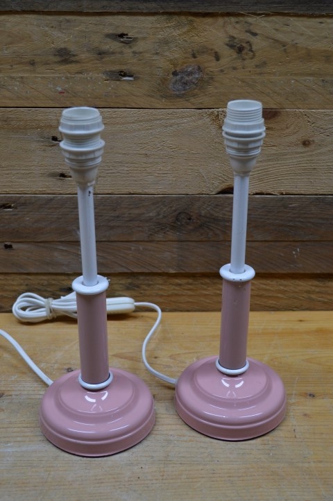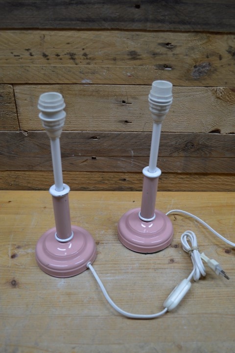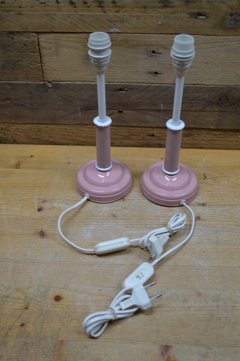 De lampenvoeten zijn tweedehands en hebben kleine gebruikssporen. U kan zelf een lampenkap uitzoeken want die is er niet bij.