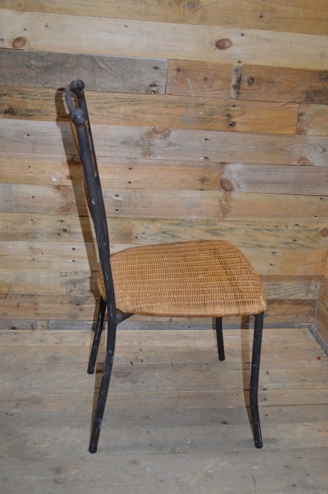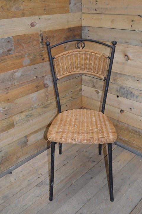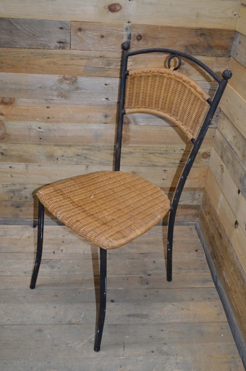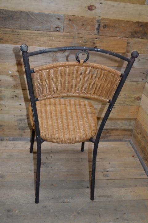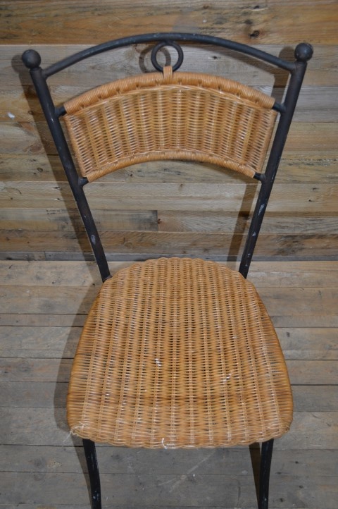 Deze zwarte metalen stoel met zitting en rugleuning van gevlochten rotan is leuk om te gebruiken als extra stoel in de keuken, eetkamer of op de slaapkamer, maar kan dankzij het elegante ontwerp daarnaast bijvoorbeeld ook erg goed als decoratie gebruikt worden.