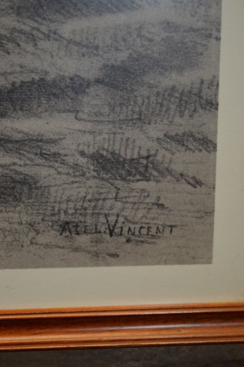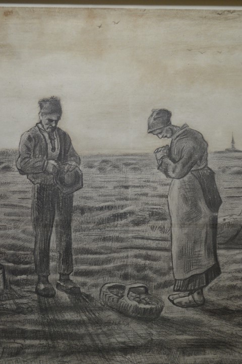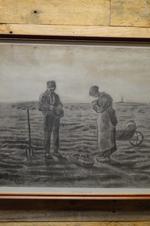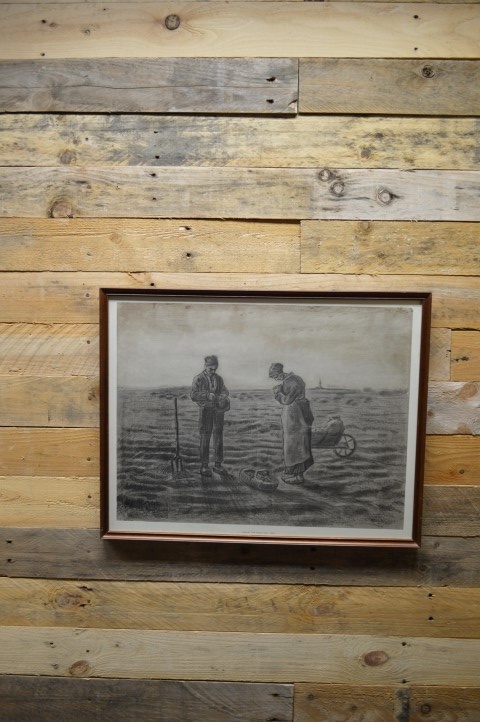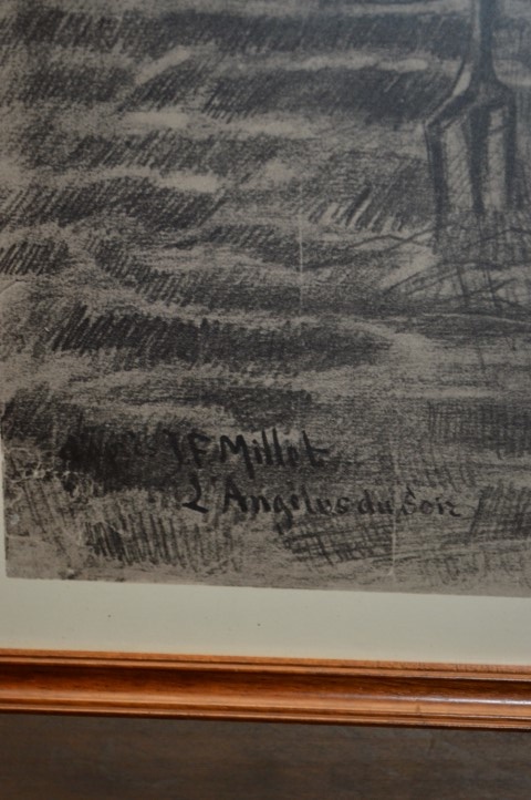 Mooie reproductie naar de ets van J.F. Millet, L'Angelus du soir in een simpele mahonie lijst.