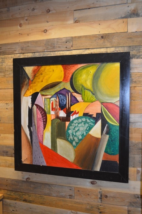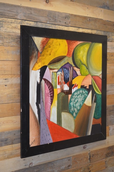 Dit abstracte schilderij met veel kleurrijke vormen fleurt iedere kamer meteen op met zijn mooie kleuren en simpele zwarte lijst. U kunt hem bijvoorbeeld in uw woonkamer, slaapkamer, keuken of hal ophangen, het maakt niet uit want hij staat overal prachtig. De lijst heeft wel wat kleine gebruikssporen maar die doen verder niet veel af aan de schoonheid van dit schilderij.