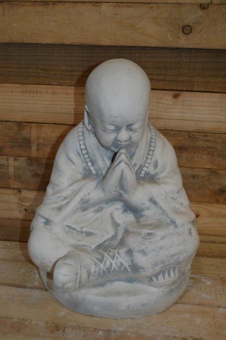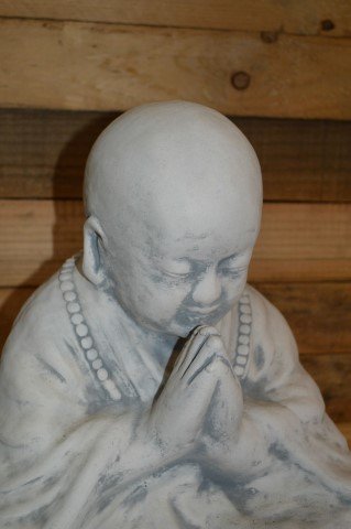 Dit betonnen Boeddha beeld toont een mediterende monnik en past perfect in zowel binnen- als buitensituaties. In moderne huishoudens wordt een Boeddha vaak gezien als symbool van geluk en rust. Het duurzame beton maakt het geschikt voor langdurig gebruik, terwijl het serene ontwerp een kalmerende sfeer creëert. Plaats het in de tuin, op een vensterbank of op een sierlijke plank voor een harmonieus accent.