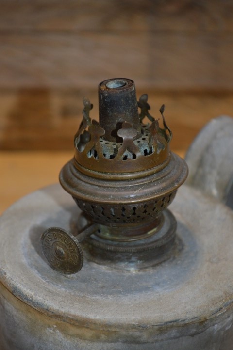 Door het vele gebruik heeft deze olielamp gebruikssporen opgelopen.