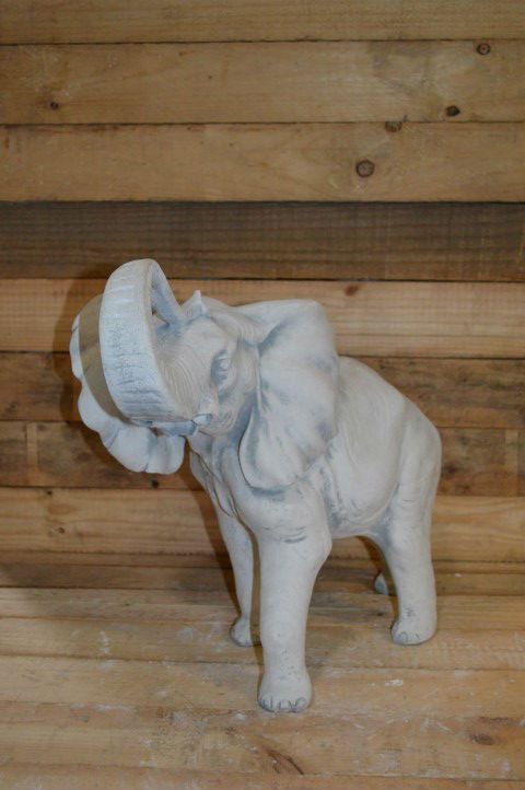 Geef uw tuin een krachtig en gelukkig accent met deze betonnen olifant met slurf omhoog. Een symbool van voorspoed en een opvallende blikvanger.