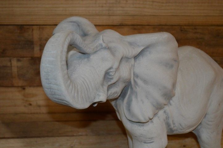 Deze imposante olifant van beton is tot in detail vormgegeven en straalt kracht en elegantie uit. Zijn slurf staat omhoog – hét teken van geluk en voorspoed. Zet hem op het terras, in de tuin of bij een vijver en laat hem de aandacht trekken. De slagtanden worden los meegeleverd om breuk tijdens transport te voorkomen. Een duurzaam en stijlvol ornament dat jarenlang mee zal gaan en uw buitenruimte een exotisch tintje geeft.