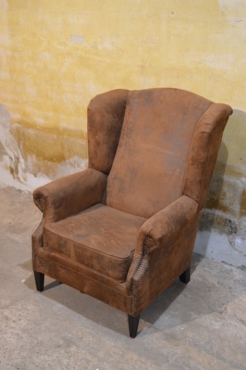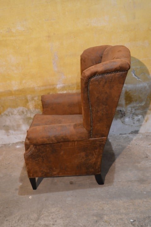 De klassieke oorvorm zorgt voor een comfortabele zit en geeft de stoel een tijdloos silhouet. De houten poten versterken het warme en authentieke karakter van deze fauteuil.
